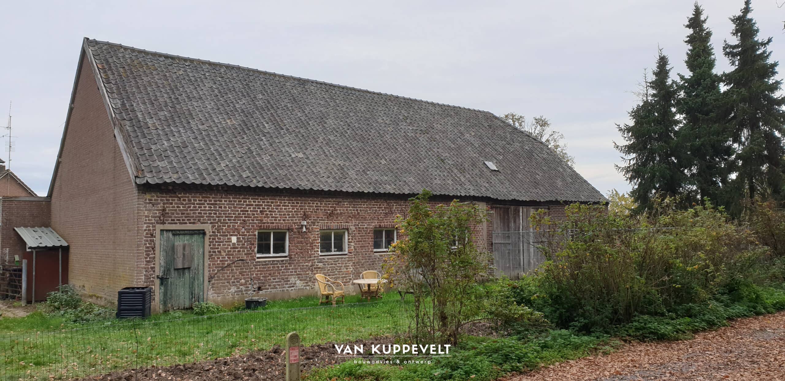 Deze oude boerderij in Heijen wordt in verband met zijn zeer slechte staat deels afgebroken en opnieuw opgebouwd. Het stalgedeelte aan de achterzijde blijft behouden. Dit deel is later gebouwd en verkeerd nog in goede staat. Het nieuwe deel zal in kapvorm en breedte aansluiten op de het te behouden stalgedeelte. Kenmerken van de bestaande boerderij worden overgenomen in de nieuwbouw. De oude “afhang” welke zich aan de linkerzijde van de boerderij bevond, zal in een moderne vorm worden teruggebouwd. Een aanbouw met houten geveldelen en een vegetatiedak. De voorzijde kenmerkt zich door een terug liggende kozijnwand op de begane grond welke met houten potdeksel delen aan de rechterzijde de hoek omgaat. Hierdoor ontstaat er een overdekt terrasje aan de voorzijde.
