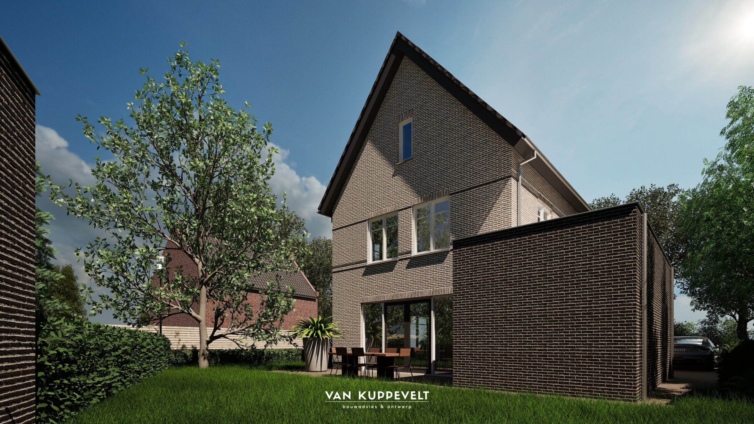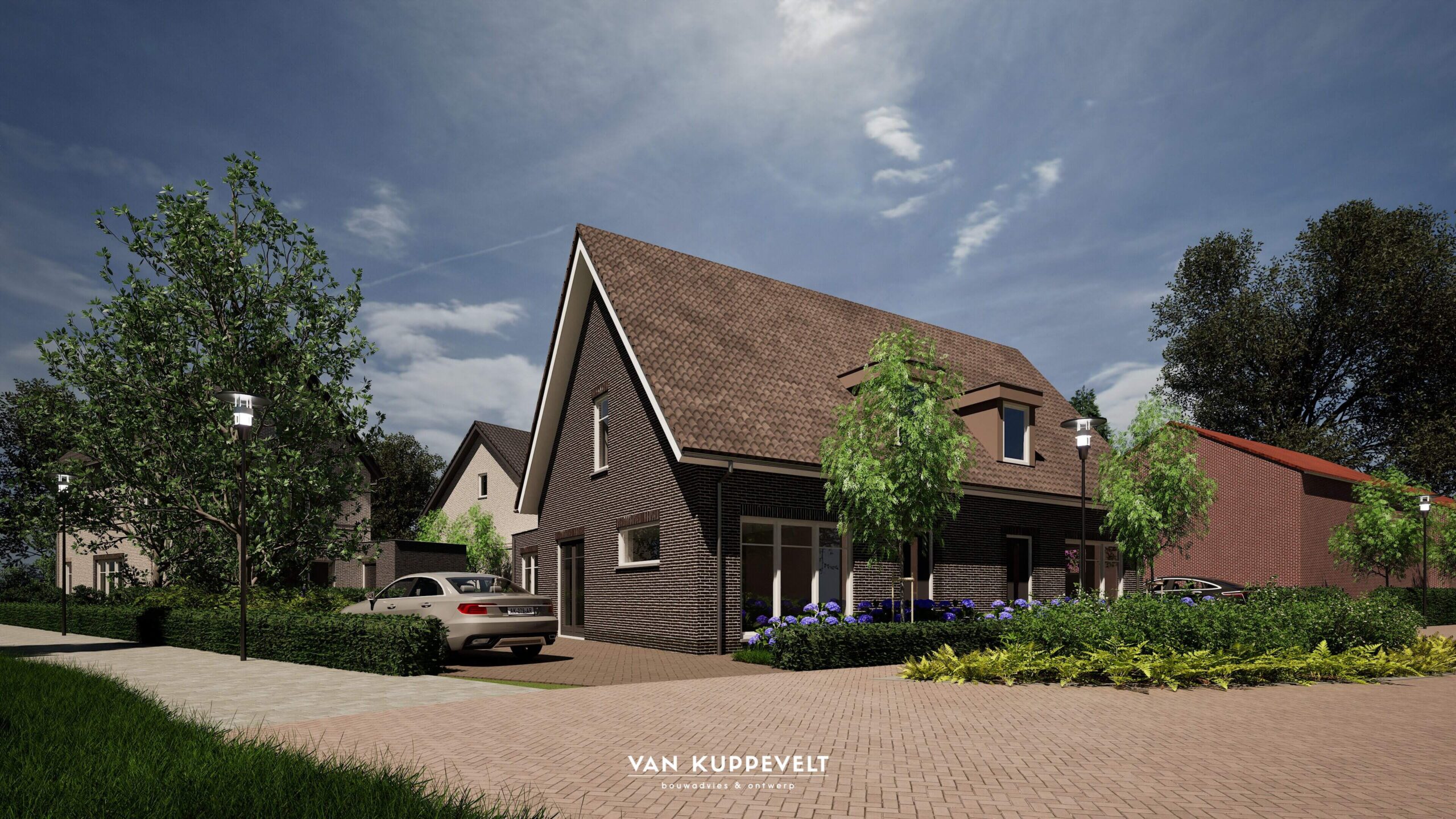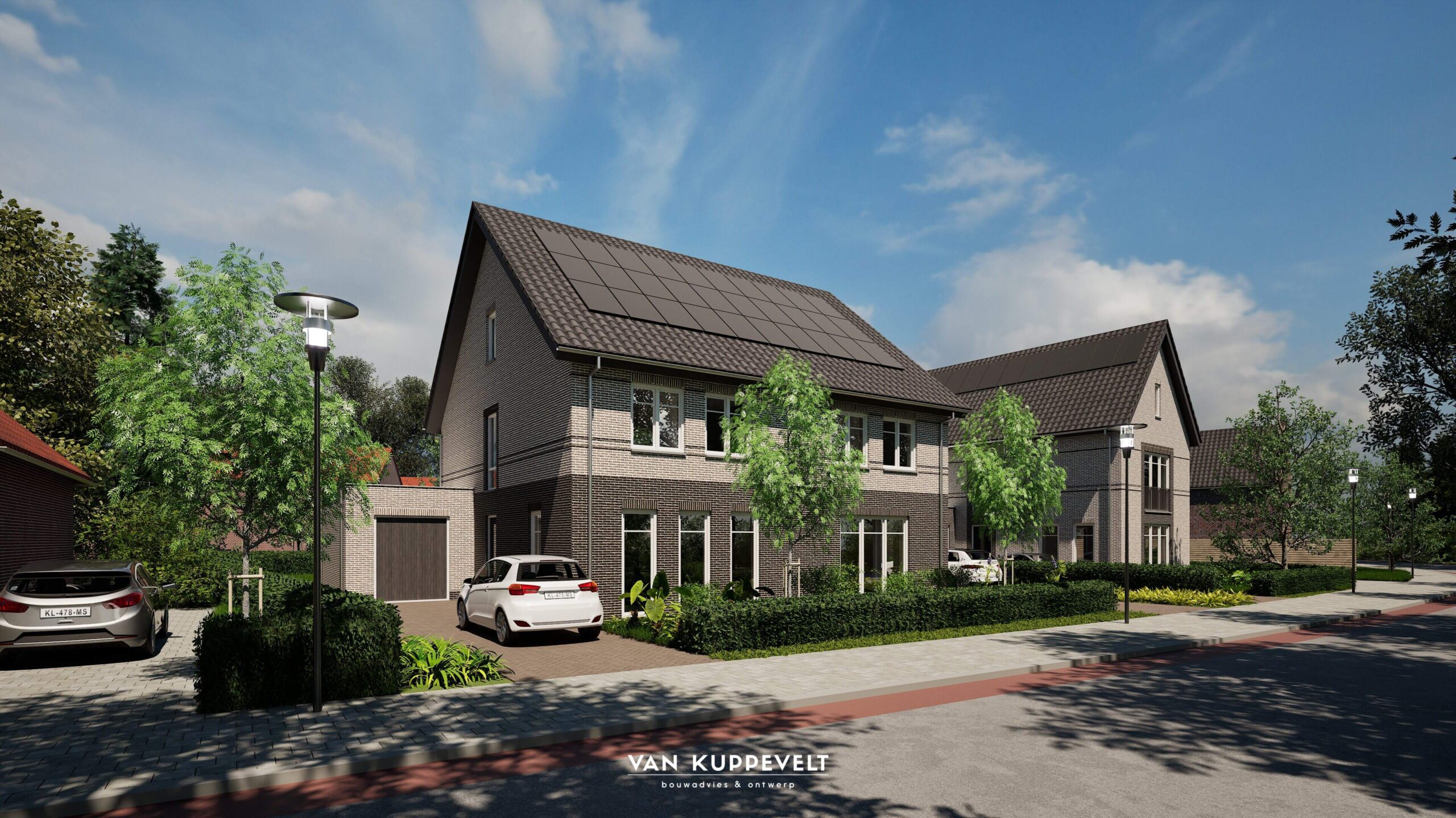 Aan de Gooiseweg en de Vermeerweg in Groesbeek wordt een kleinschalige ontwikkeling gerealiseerd. Het betreffen een twee onder één kap woning, een vrijstaande woning en 2 geschakelde seniorenwoningen. De woningen aan de Gooiseweg worden uitgevoerd in een bronskleurige steen met zwarte elementen of een zwarte plint. De tweekapper krijgt een verdiepingshoog basement van zwarte stenen. De vrijstaande woning wordt uitgevoerd met een zwarte plint en enkele zwarte elementen/kaders in de gevels. De donkere speklagen geven een mooie belijning in de gevels. De geschakelde seniorenwoningen worden in een grijsbruine steen opgetrokken en voorzien van bruin-rood gemailleerde dakpannen aansluitend op de bestaande lintbebouwing in de Vermeerweg. De twee koperkleurige dakkapellen geeft het geheel meer uitstraling.