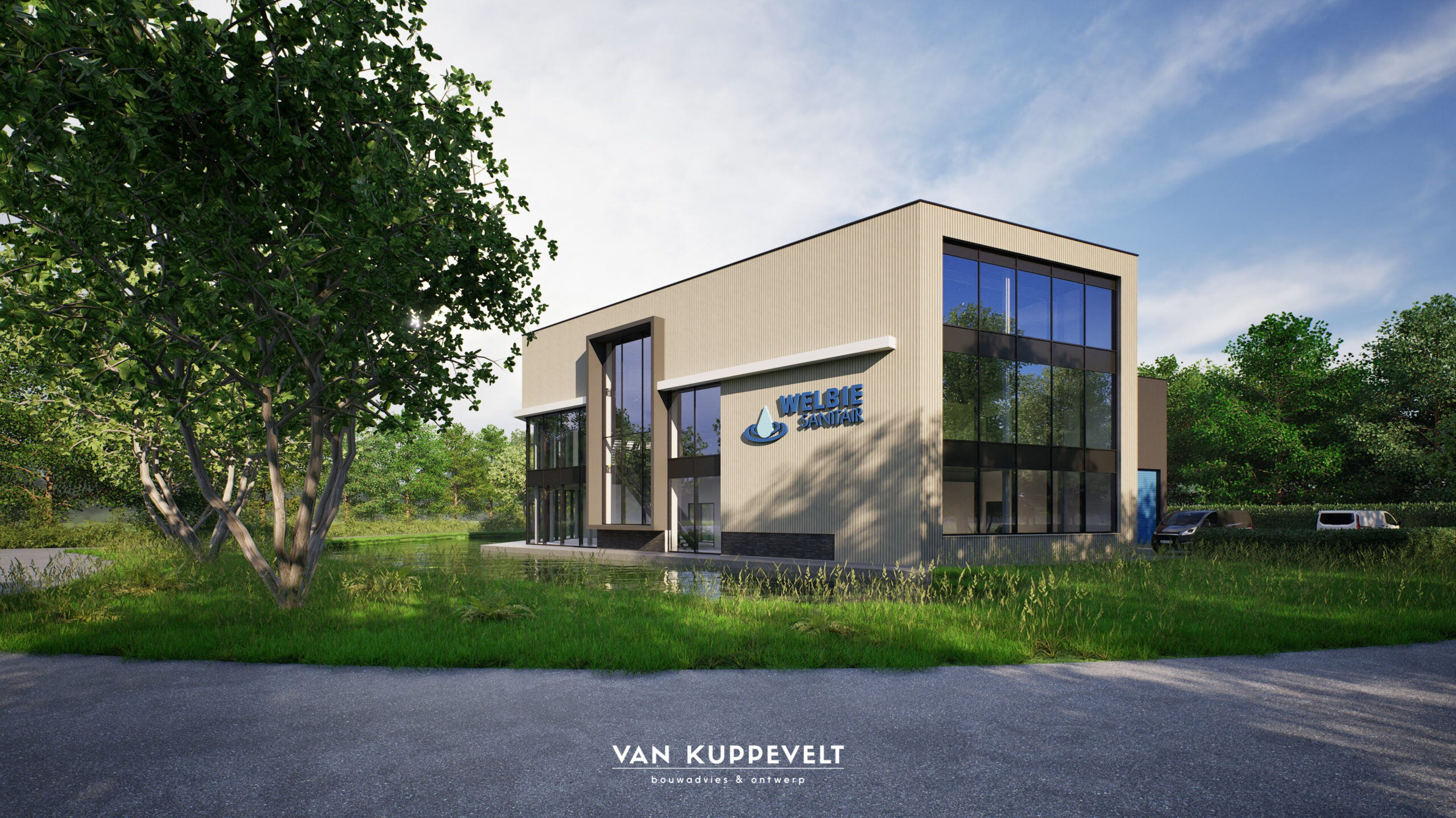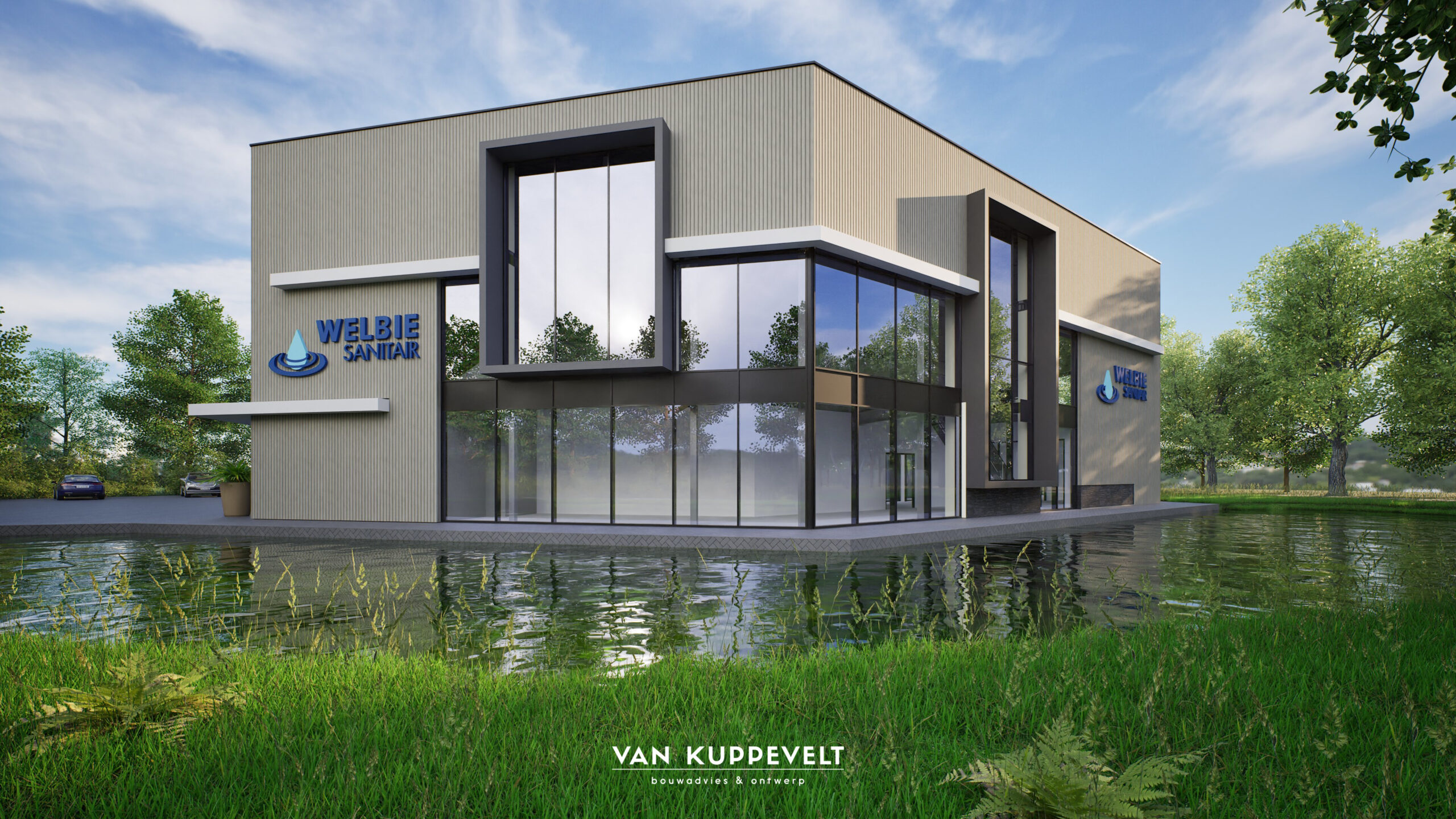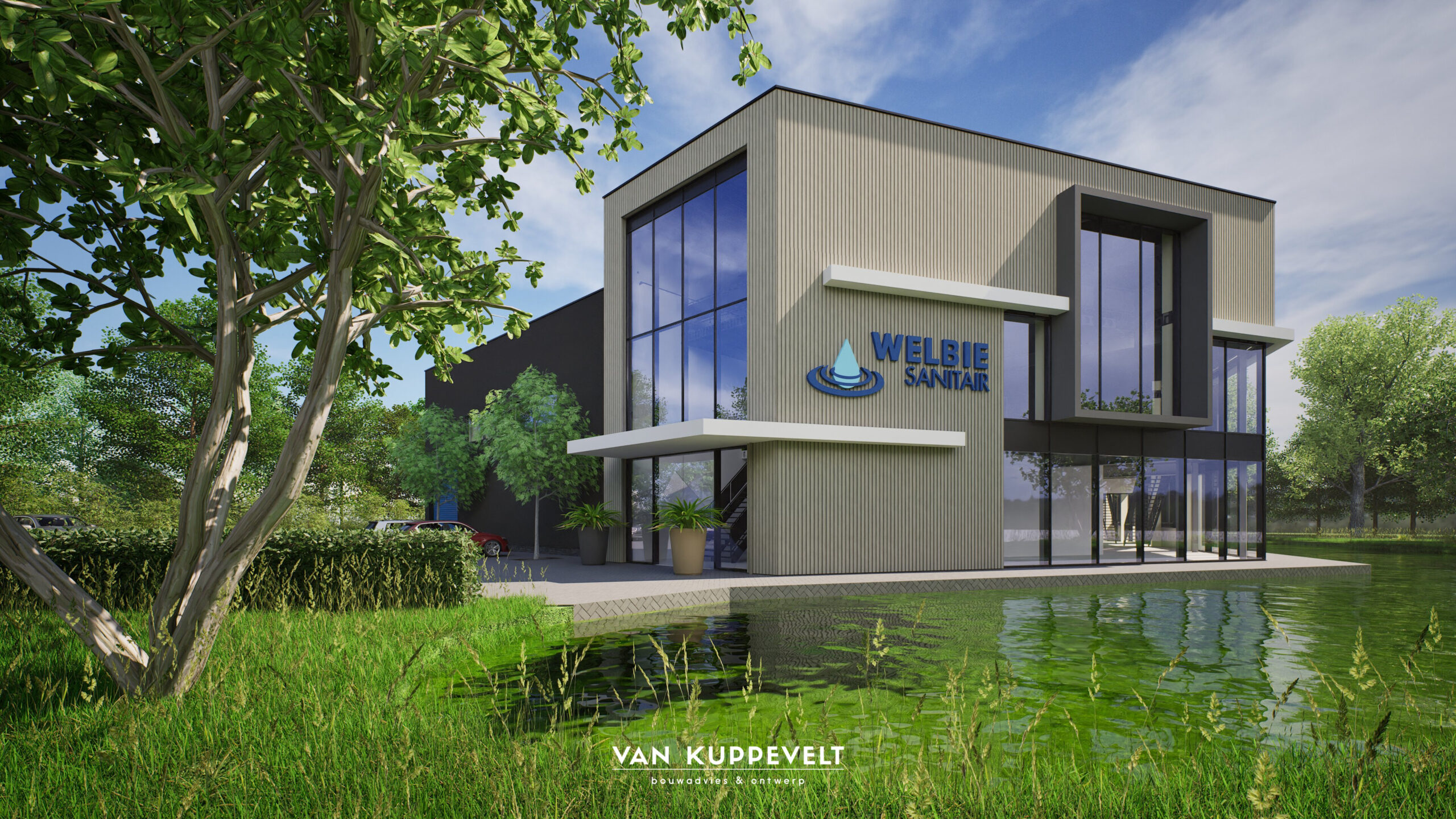 Dit bedrijfspand staat op een prominente plaats op het industrieterrein van Groesbeek. Het pand is gesitueerd aan de rotonde op de doorgaande weg vanuit De Hulsbroek naar De Hoge Horst. De wens van de opdrachtgever was om een modern bedrijfspand te realiseren met een niet alledaagse verschijningsvorm. Bij de twee voorgevels aan de rotonde hebben we een grote glaspartij ontworpen waarachter de showroom en etalages zijn gelegen. Twee prominente kaders met glas, ieder in een eigen kleur, voorzien de drie etages van extra daglicht tot ver in het pand. De versprongen witte luifels vormen de verbinding tussen de verschillende elementen leidend naar de entree-partij.