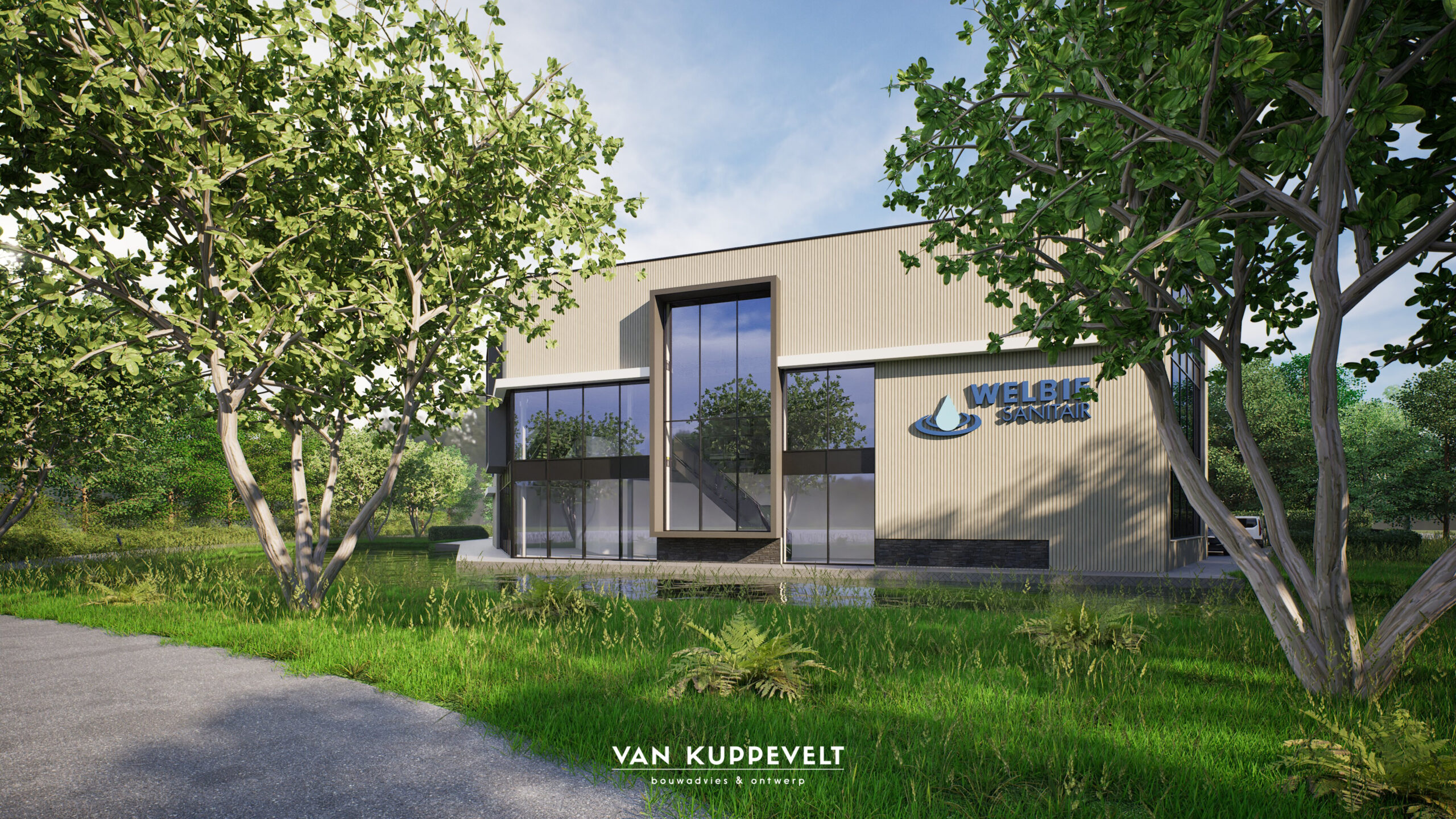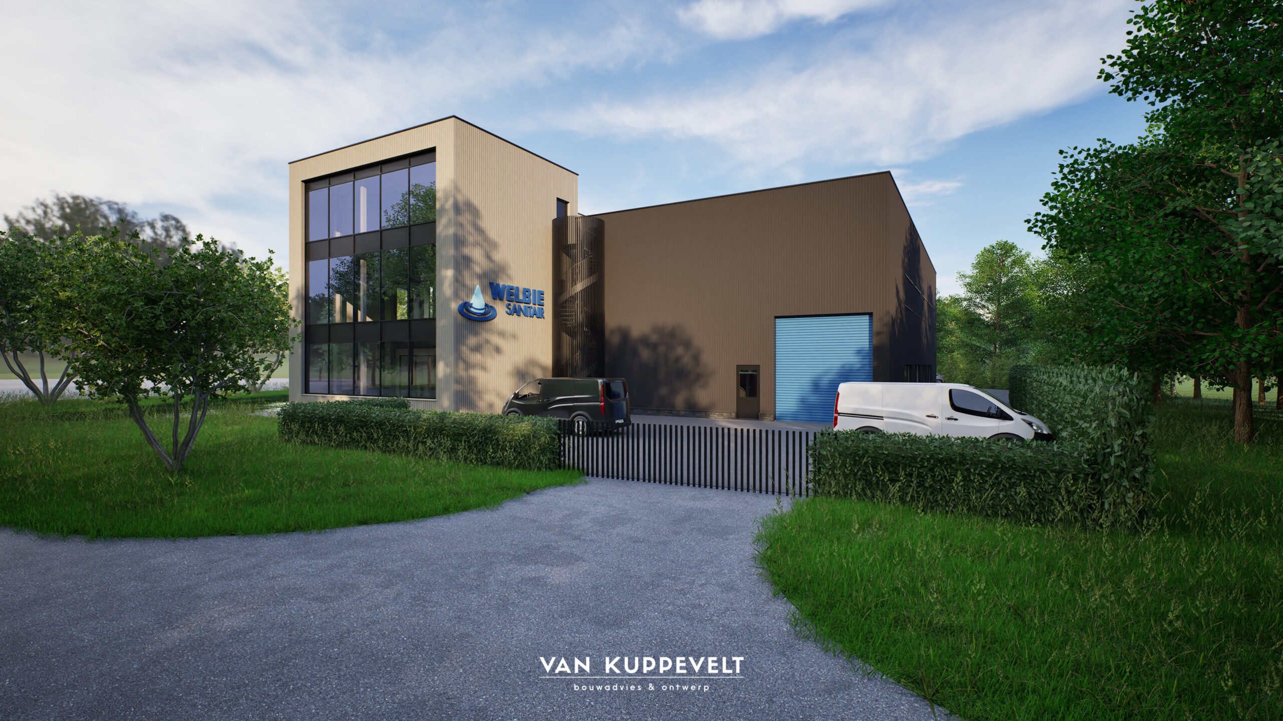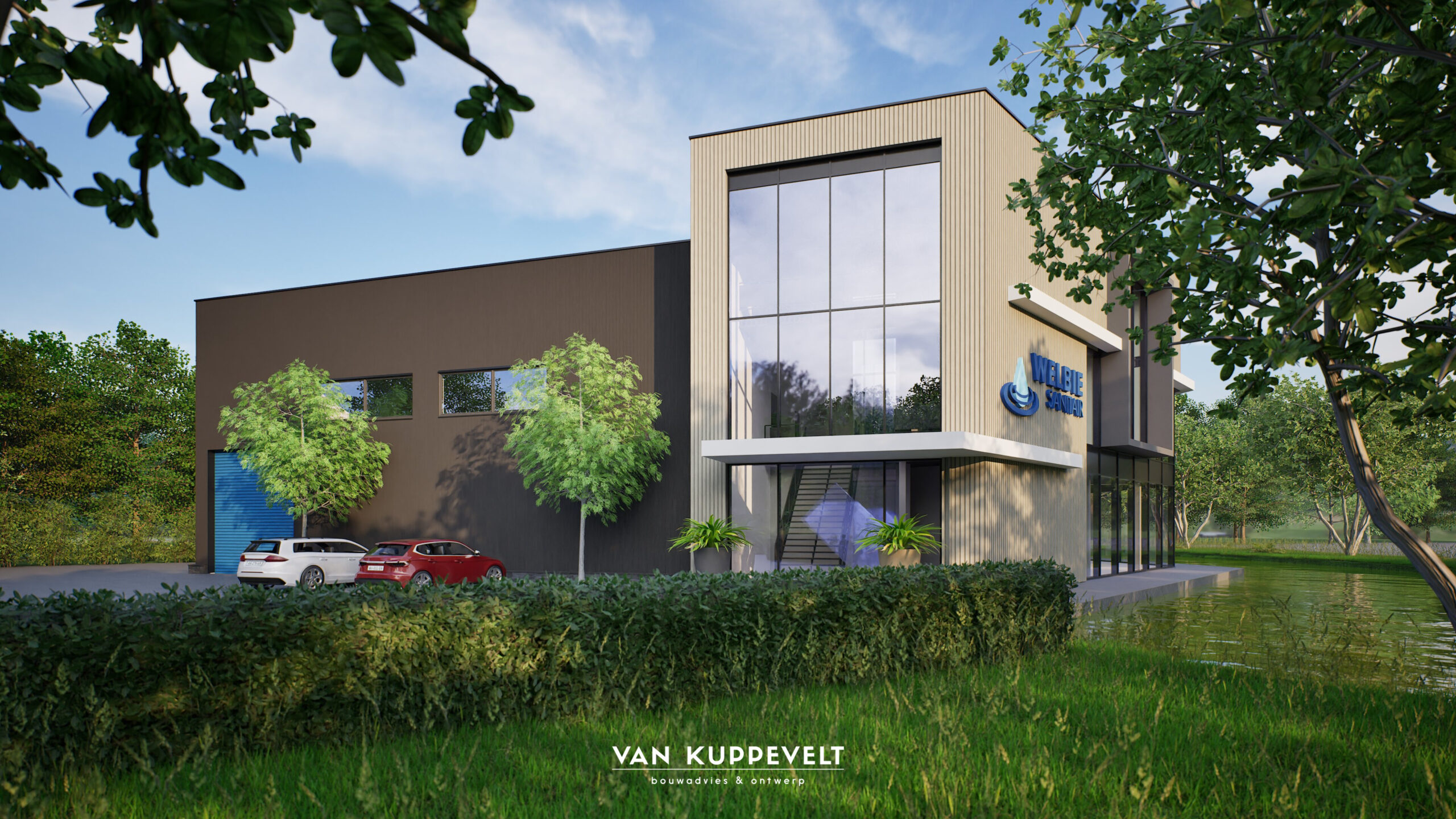 Dit bedrijfspand staat op een prominente plaats op het industrieterrein van Groesbeek. Het pand is gesitueerd aan de rotonde op de doorgaande weg vanuit De Hulsbroek naar De Hoge Horst. De wens van de opdrachtgever was om een modern bedrijfspand te realiseren met een niet alledaagse verschijningsvorm. Bij de twee voorgevels aan de rotonde hebben we een grote glaspartij ontworpen waarachter de showroom en etalages zijn gelegen. Twee prominente kaders met glas, ieder in een eigen kleur, voorzien de drie etages van extra daglicht tot ver in het pand. De versprongen witte luifels vormen de verbinding tussen de verschillende elementen leidend naar de entree-partij.