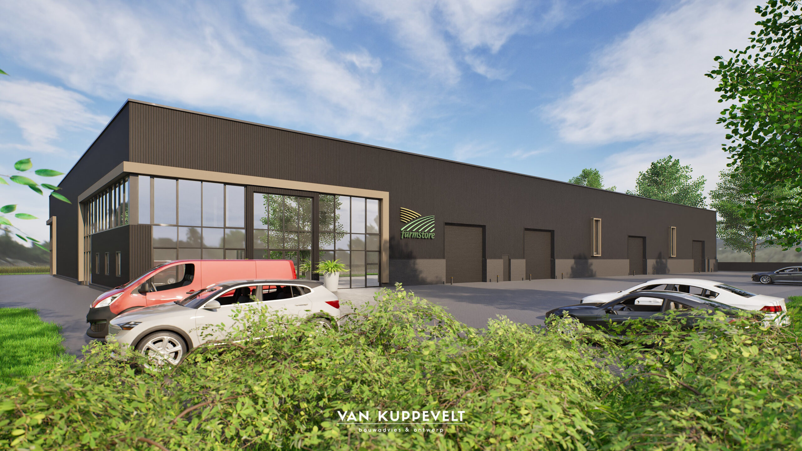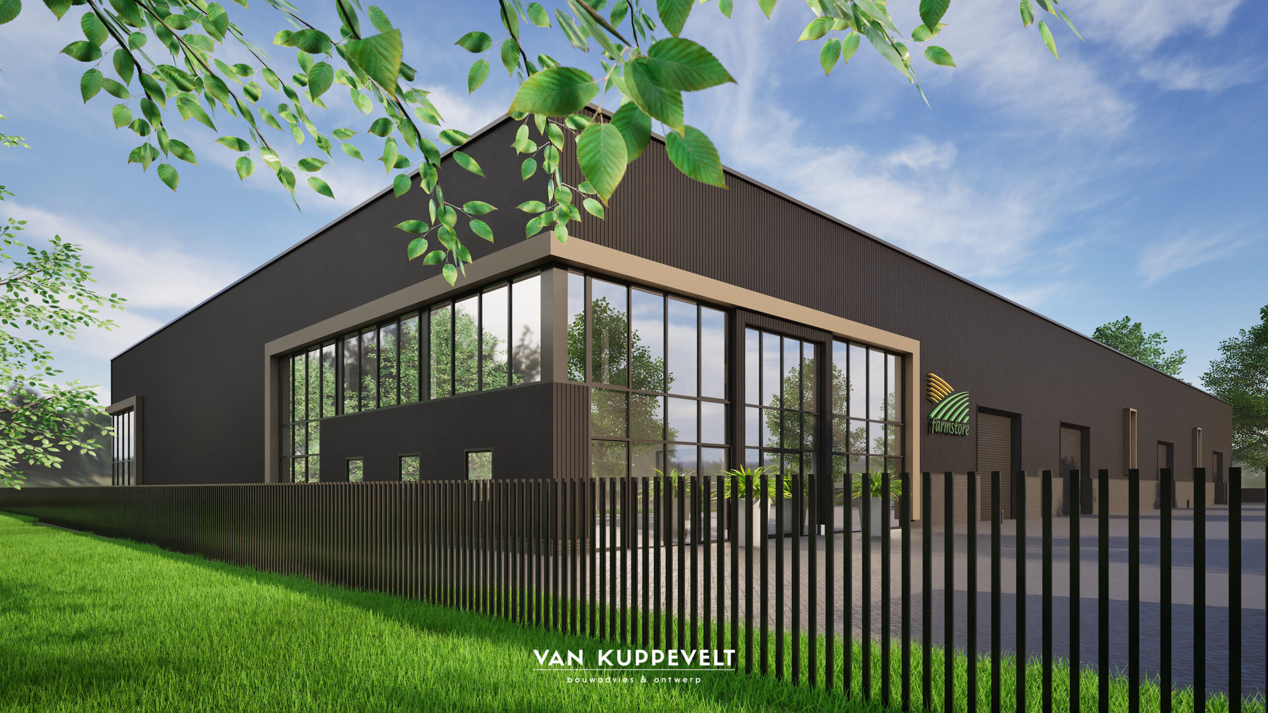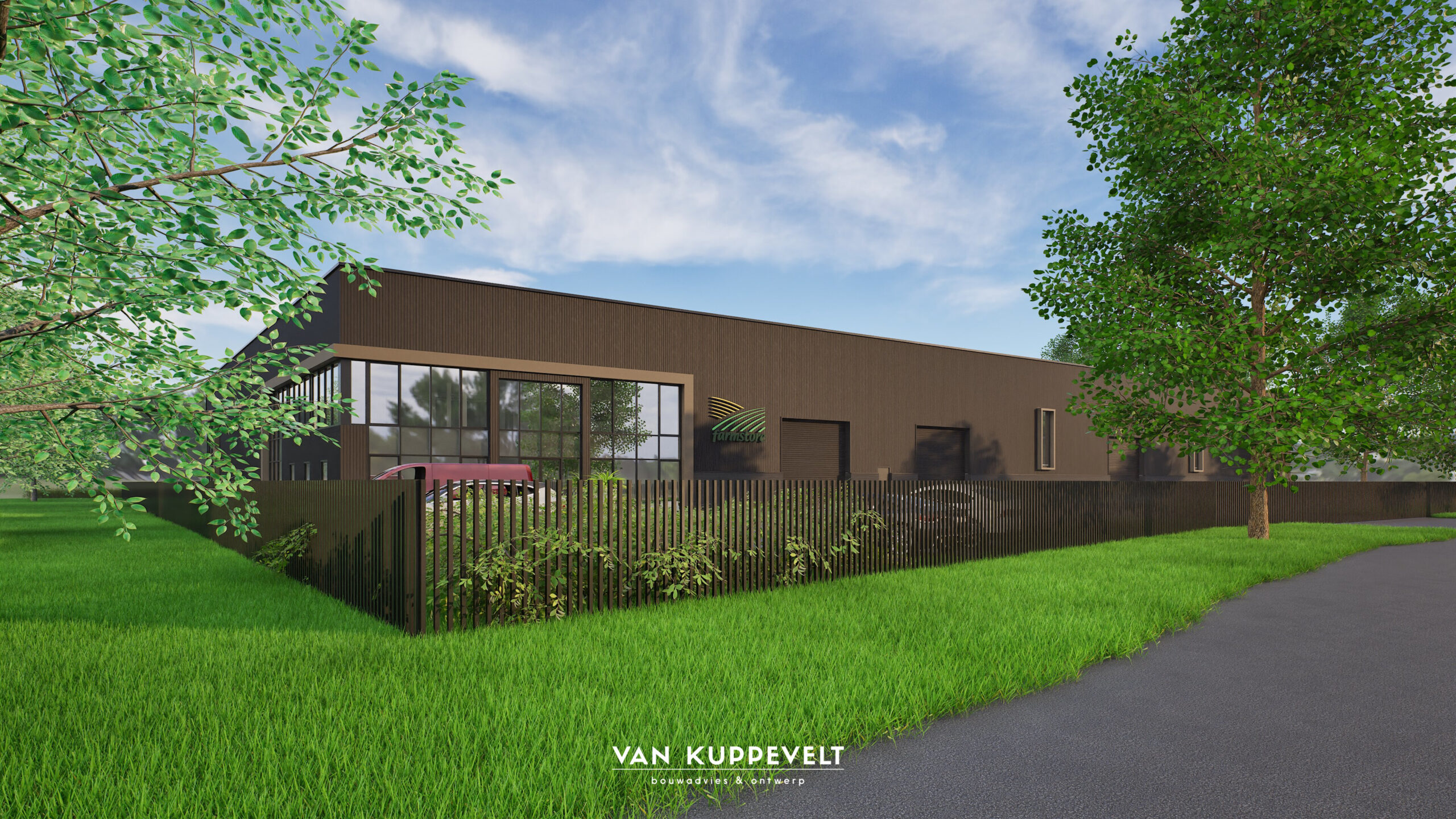 Op het bedrijventerrein Laarakker in Haps wordt dit bedrijfspand gebouwd. Het bedrijfspand bestaat uit drie gebouwdelen: kantoorruimten, showroom en een bedrijfshal. Alles ondergebracht in één gebouwvolume. De entree is gesitueerd aan de kopzijde van het pand. Een prominent kader geeft aan waar de entree-partij zich bevindt en omkaderd de ruimte waar de kantoren en spreekkamers zich bevinden. Aan de zijde van de doorgaande weg (Oeffeltseweg) heeft het pand een lang gerekte dichte gevel. Om deze gevellengte te doorbreken zijn er op een viertal plaatsen kaders aangebracht waarmee daglicht wordt binnen gehaald in de bedrijfshal. Op de kop van deze lange gevel bevindt zich de showroom. Een vliesgevelkozijn welke de hoek is omgezet geeft voldoende zicht op de showroom vanaf de straatzijde.